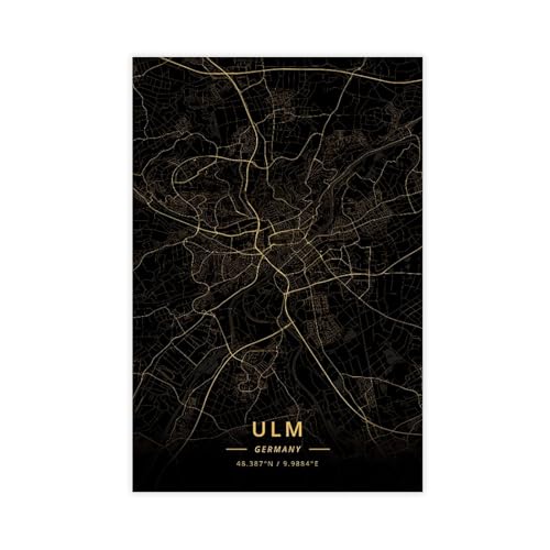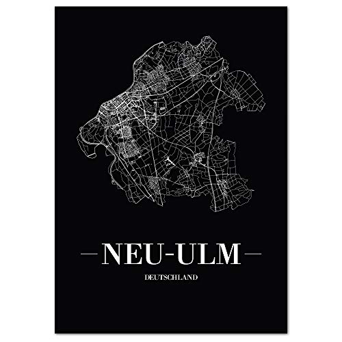 TANOKCRS Neu-Ulm Deutschland Karte Wandkunst Leinwand drucken Poster Artwork ungerahmt moderne Schwarz-Weiß-Karte Souvenir Geschenk Home Decor 28x36 cm