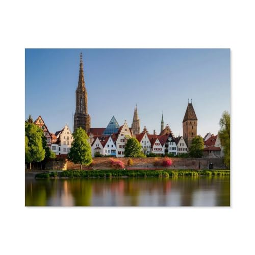Blick von Neu-ULM auf ULM an der Donau,Metall-Blechschild, neues Vintage-Metall-Blechschild, Wandkunst, Blechschild, Jahrestag, Geburtstag, Weihnachten, Einweihungsschilder(15 x 30 cm)6 x12 Zoll-D36