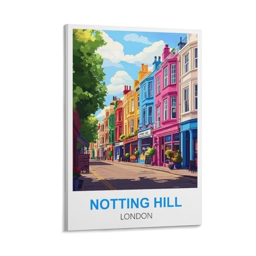 LNHZGNJNH Notting Hill London Vintage-Reiseposter, 20 x 30 cm, Leinwand, Wandkunst, Wandbild, Gemälde, Dekoration, Wohnzimmer, Schlafzimmer, Dekoration