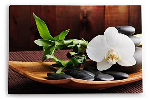Dazzlewall Serene Zen Wanddeko, Beruhigende Blaue Orchidee & Gestapelte Steine Wandbilder für Yoga Meditation Spa Büro Schlafzimmer Wohnzimmer Ohne Rahmen 30x40 cm