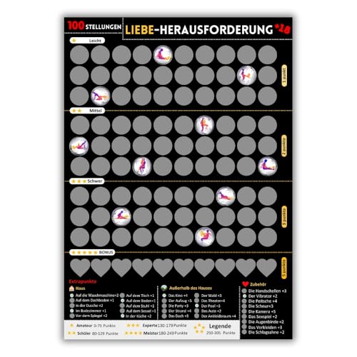 Kamasutra - Liebesspiel 100 Stellungen, Rubbelkarten-Poster, Spiele für Erwachsene, Romantische Date-Idee für Paare ab 18, Perfekt als Jubiläumsgeschenk, Geschenk für Männer und Frauen, Game Poster