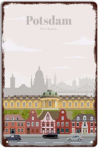 QIRIUS Metall-Blechschild Reise nach Potsdam Poster, Vintage-Wanddekoration, Spaß für Zuhause, Küche, Bar, Pub, Mann, Café, Zimmer, Garage, Retro-Schild, 30,5 x 20,3 cm