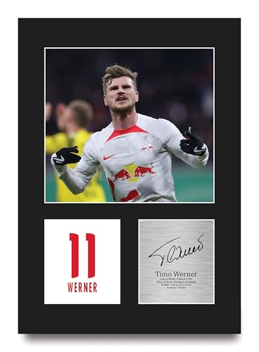 HWC Trading Timo Werner RB Leipzig Geschenke Gedrucktes Signiertes Autogramm Foto für Fußball Anhänger and Fans - A4 Porträt