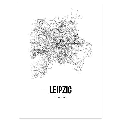 JUNIWORDS Stadtposter - Wähle Deine Stadt - Leipzig - 21 x 30 cm Poster - Schrift B - Weiß