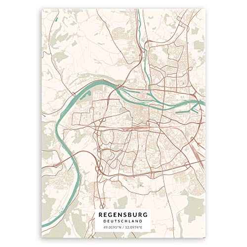 Mapdify Regensburg personalisiertes Stadtposter, dein Lieblingsort als Wandposter, Karte deiner Stadt, personalisiertes Andenken an Regensburg – Stil: Pure