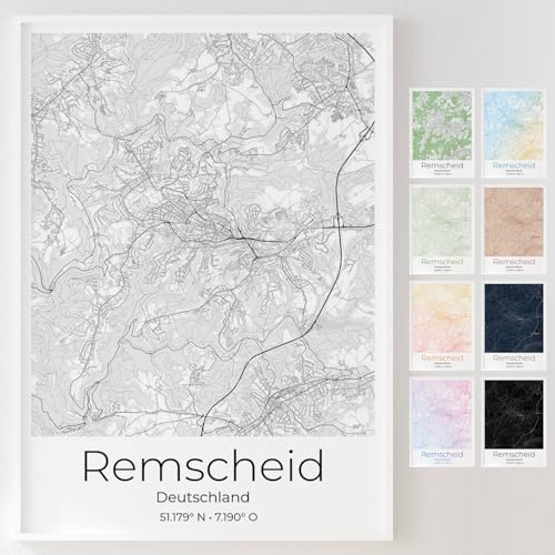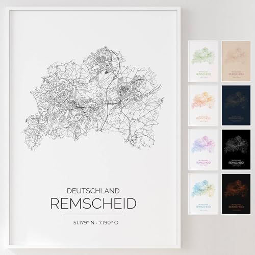 Mapdify Remscheid personalisiertes Stadtposter, dein Lieblingsort als Wandposter, Karte deiner Stadt, personalisiertes Andenken an Remscheid – Stil: Pure