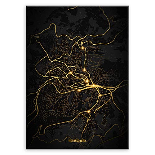 Murrano Poster Wandbilder Deko Wohnzimmer - Städte - zur Selbstmontage mithilfe eines Magnets montiert - aus Metall - City Lights - Remscheid - 45 x 32 cm