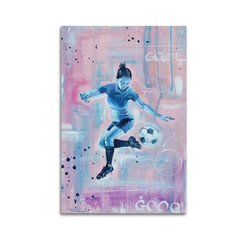 Vintage-Sportposter mit Ölgemälde-Stil, Frauenfußball-Poster, moderne Wandkunst, Leinwand, ästhetische Dekoration, Gemälde, 30 x 45 cm, ungerahmter Stil