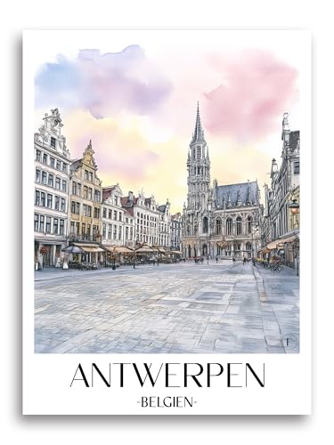 HUIYHB Minimalistisches Vintage-Poster, Europa, Belgien, Antwerpen, Poster, dekorative Malerei, Leinwand, Wandposter und Kunstdruck, moderne Familienschlafzimmer-Dekoration, Poster, 40 x 60 cm