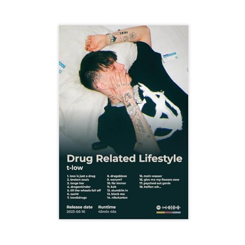 Kunstposter T Low Hip Hop Musikalbum Drogenbezogenes Lifestyle-Cover Tracklist Rapper Sänger Fans Geschenk Rap-Rap Raumdekor Leinwand Poster Wandkunst Dekor Druck Bild Gemälde für Wohnzimmer