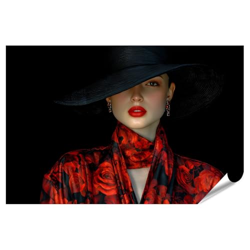 Wandkunst, Frau mit rotem Hut, die auf dem Weg läuft, geheimnisvolle Mode-Dekoration für Wohnzimmer und Schlafzimmer, künstlerisches Wandbild, moderne Hängedekoration, Poster, 30 x 45 cm