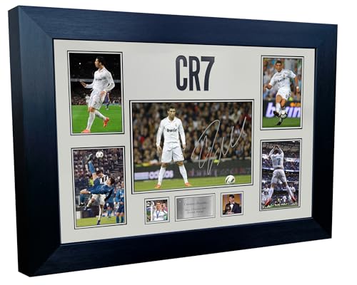 Großes A3+ signiertes CR7 Cristiano Ronaldo Real Madrid Display Autogramm-Foto-Bilderrahmen Fußball Fußball Poster Geschenk Manchester United Juventus Al-Nassr Portugal (cremefarbenes Passepartout)