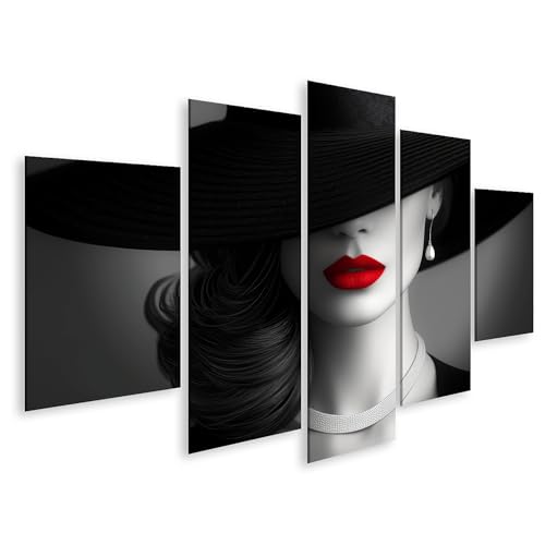 ZHONGYUTONG Audrey Hepburn Leinwandbild mit Rahmen Rosa Lippenstift Wand Gemälde Schwarz Weiß Kunstdruck Moderne Wanddekoration für Wohnzimmer Schlafzimmer (60x90cm)