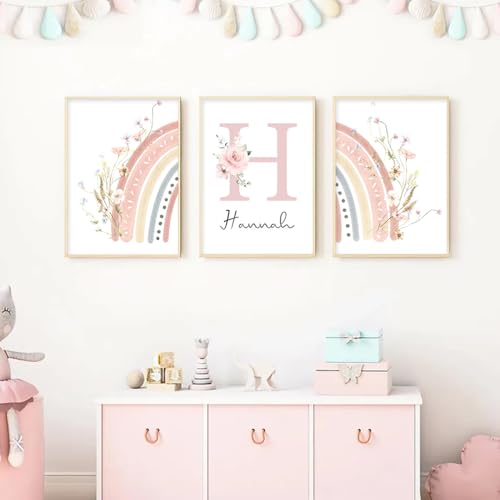 Youihom 3 Bilder Kinderzimmer Mädchen Rosa 30x40 Babyzimmer Poster Personalisiert Wandbilder Kinderzimmer Name Wandposter Baby Ballerina Love Bilderwand Leinwand ohne Rahmen (CZS037)