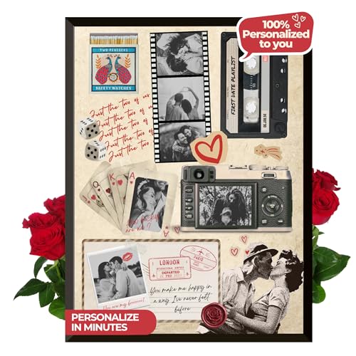 LOVE BOARD Personalisiertes Pärchen-Poster mit Rahmen: individueller Liebesgeschichte-Druck mit Fotos, Lied, Reisen & Widmung | Romantisches Geschenk für Paare, Jahrestag oder Valentinstag
