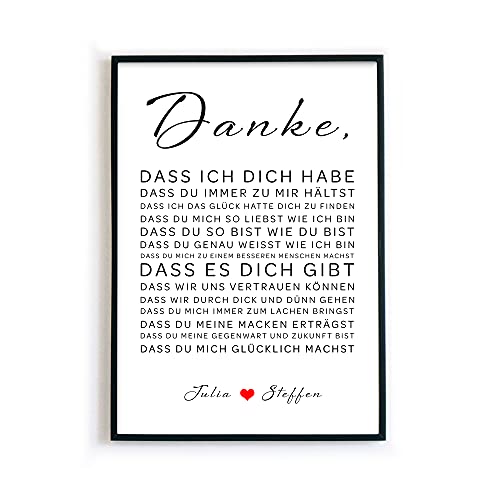 Liebeserklärung Poster Personalisiert - Personalisiertes Geschenk für Sie/Ihn ideal zum Jahrestag, Geburtstag oder Weihnachten. Danke sagen mit liebvollen Worten an den Partner