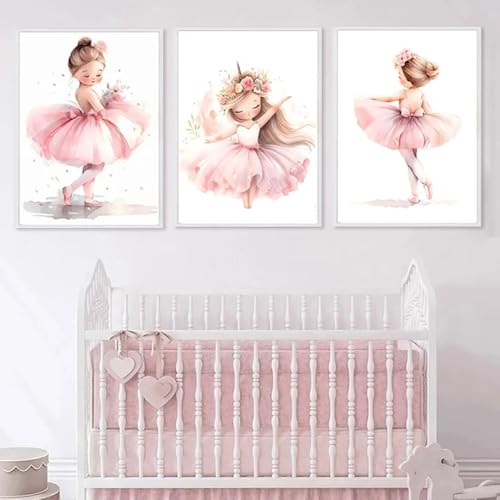 Youihom 3 Bilder Kinderzimmer Mädchen Rosa 30x40 Babyzimmer Poster Personalisiert Wandbilder Kinderzimmer Name Wandposter Baby Ballerina Love Bilderwand Leinwand ohne Rahmen (CZS040)