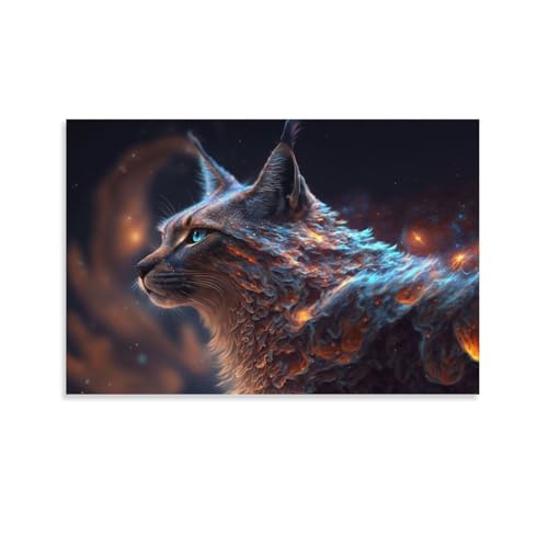 POLIUAWS Poster „Luchs im Sternennacht-Stil“, personalisierbar mit Leinwand, Dekoration für Zuhause, Büro, Wohnzimmer, Schlafzimmer, Geschenkidee für Frauen zum Geburtstag, 20 x 30 cm (8 x 12 Zoll)