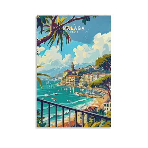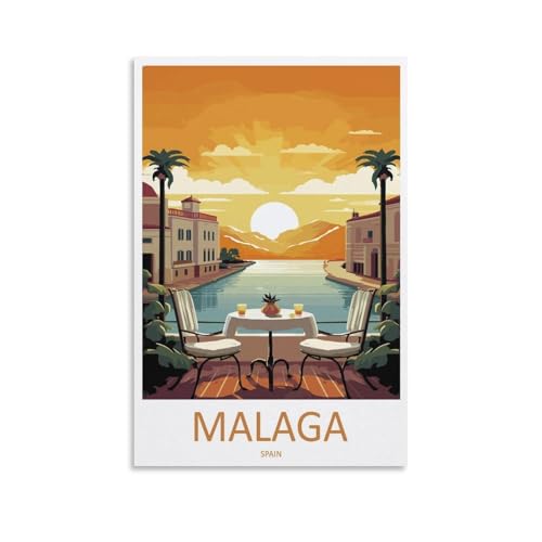 EKMCL Vintage-Reiseposter „Malaga, Spanien“ – Retro-Poster aus Metallblech, 30 x 30 cm. Ideal für Bar, Hobbyraum, Café, Garage oder als Wanddekoration.