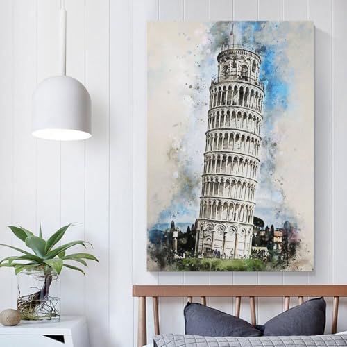 POLIUAWS Leinwandbild – Pisa als Aquarellbild, Kunstdruck auf Leinwand, Poster und Drucke, Wandkunst, Wohnzimmer, Heimdekoration, Zimmerdekoration, Teenagerzimmer, 12 x 18 Zoll (30 x 45 cm)