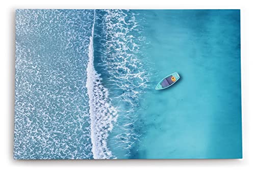 Paul Sinus Wandbild 60x40cm Dekorative Kunst Luftaufnahme Strand Boot Blau Meer Wellen Vogelperspektive