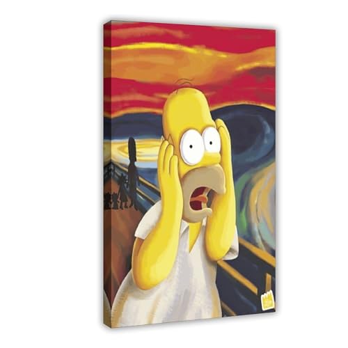 Repaly Homer The Scream Simpsons Poster auf Leinwand, Wandkunst, Dekordruck, Bild Gemälde für Wohnzimmer, Schlafzimmer, Dekoration, ungerahmt, 40 x 60 cm