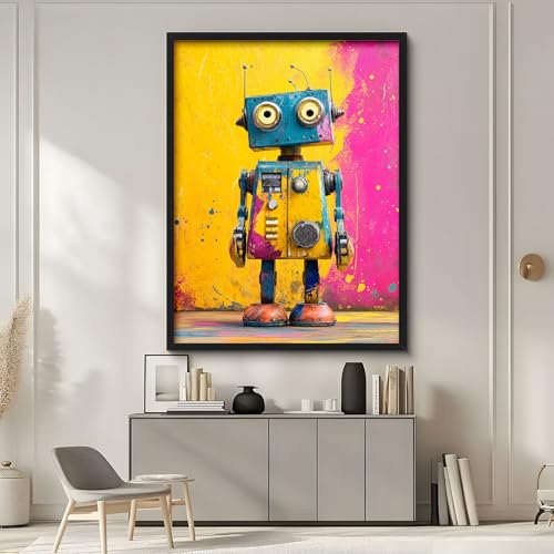 Urban Graffiti Leinwandbild mit niedlichem kleinen Roboter-Design, Poster für Schlafzimmer-Dekor und Badezimmerbilder, Polyester, ungerahmt, moderne Wanddekoration