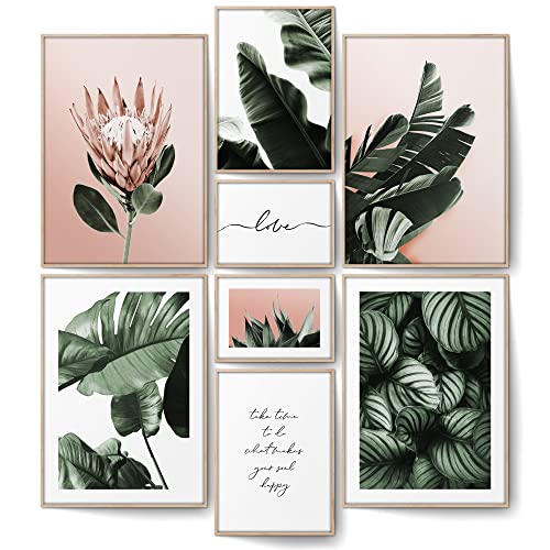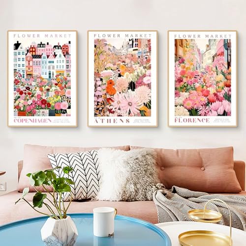 kollyseek Poster Wandbilder Wohnzimmer Modern -3 pcs 30x40cm Rosa Blumen Liebe INS Set wohnzimmer deko Leinwand Wohnzimmer Wanddekoration (Ohne Rahmen 30x40cm)