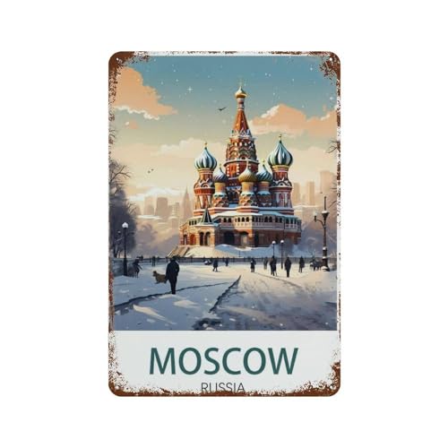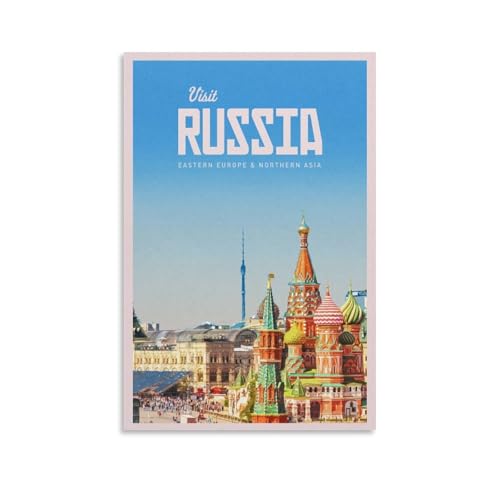 QXYUIN Vintage-Poster Moskau, Russland, Flussufer mit historischer Architektur und Zug.jpg, Poster, Wandkunst, Leinwand, ästhetisches dekoratives Gemälde für Zimmer, 20 x 30 cm, Rahmenstil