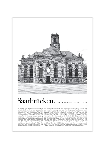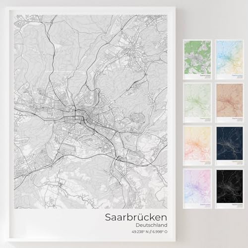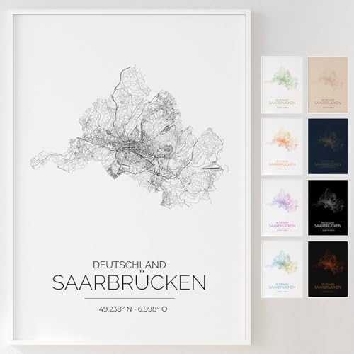 Mapdify Saarbrücken personalisiertes Stadtposter, dein Lieblingsort als Wandposter, Karte deiner Stadt, personalisiertes Andenken an Saarbrücken – Stil: Studio