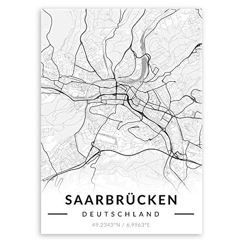 Mapdify Saarbrücken personalisiertes Stadtposter, dein Lieblingsort als Wandposter, Karte deiner Stadt, personalisiertes Andenken an Saarbrücken – Stil: Pure