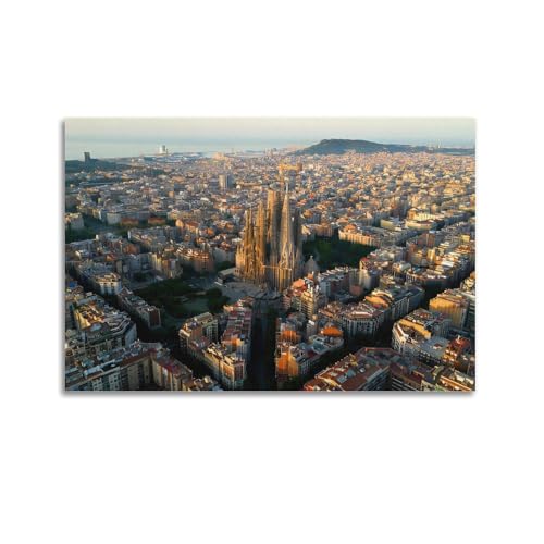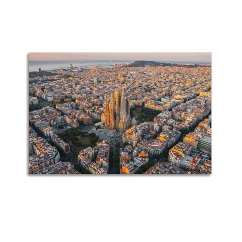 favplace Poster mit Städtemotiv Sagrada Familia Barcelona Premium Kunstdruck - Stadtposter bzw. Reiseposter DIN A4 bis A1 - Leinwand Städtposter - Wandbild A4
