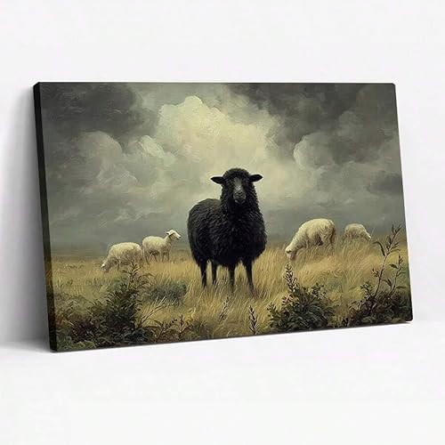 LZJAGXX Vintage-Gemälde mit schwarzem Schaf auf Leinwand – Landhaus-Wandkunst, Tierporträt, Bild für Wohnzimmer, Hausdekoration (30 x 40 cm/auf Leinwand gewickelt)
