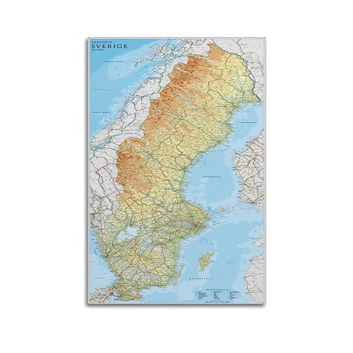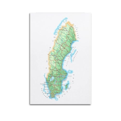 Reiseposter, Schweden, Aquarellkarte, Nr. 3, Poster, dekoratives Gemälde, Leinwand, Wandposter und Kunstdruck, modernes Familienschlafzimmer, Dekoration, Poster, 30 x 45 cm