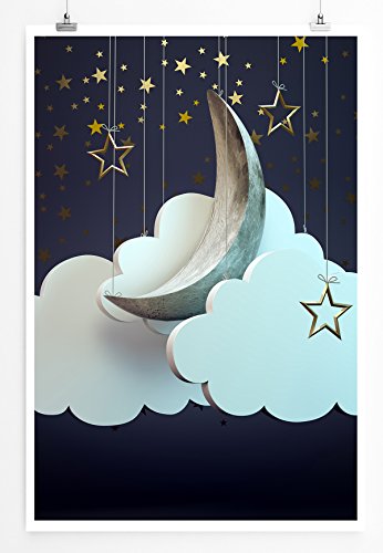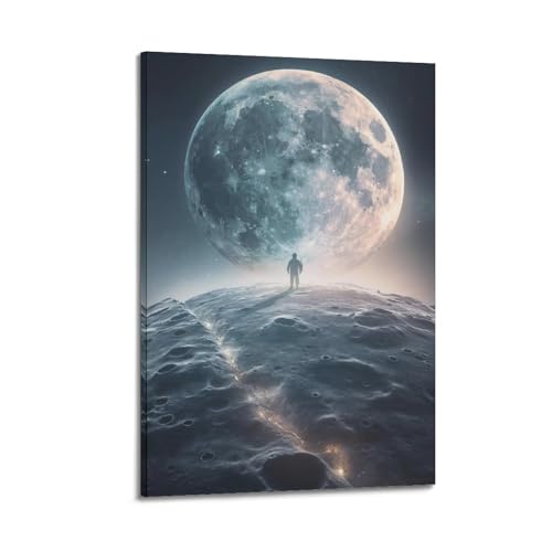 WPHSFX Weltraum-Poster, Silbermond am Rand des Himmels, dekoratives Gemälde, Leinwand, Wandposter und Kunstdruck, moderne Familienschlafzimmer-Dekoration, Poster, 40 x 60 cm