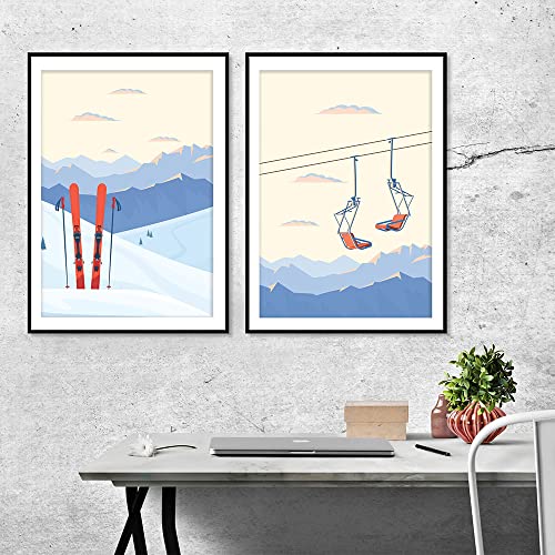 TSHAOSHUNHT Kunstdruck auf Leinwand, Vintage-Ski-Foto, Straßenlücke, Mädchen, Gemälde, Wintersport, Skifahren, Poster, Heimwanddekoration, 60 x 90 cm x 1 Stück, rahmenlos