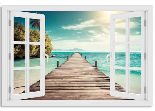 Galmcook Leinwand Bilder mit Rahmen – Wandbild 30x40 cm Seesteg Berglandschaft, Kunstdruck auf Leinwand, Wandbilder Modern für Wohnzimmer, Schlafzimmer oder Flur, mit Haken & ohne Spuren Nägeln