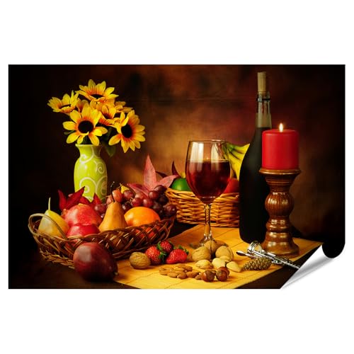 islandburner Poster Stilleben mit Früchten Wein und Sonnenblumen - Poster 90x60cm