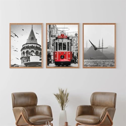 Baibexing Istanbul Vintage Poster Schwarz Weiß Istanbul Wand Kunstdrucke Türkei Straße Große Moschee Reise Leinwand Malerei Büro Wohnkultur 60X80Cmx3Pcs Kein Rahmen