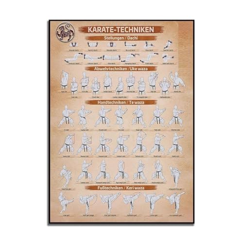 SHINERING Vintage Karate-Technik-Poster, Karate- Und Kampfkunst-Wandkunst, Karate-Lehrer-Geschenk, Kampfkünstler-Geschenk, Karate-Lehrer-Geschenk 21Cmx30Cm Kein Rahmen