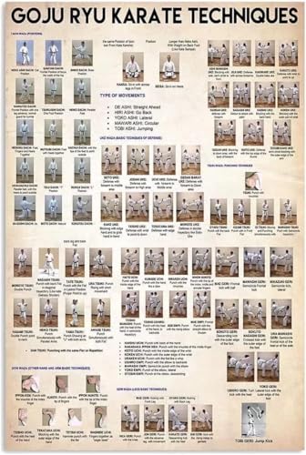 SHINERING Vintage Karate-Technik-Poster, Karate- Und Kampfkunst-Wandkunst, Karate-Lehrer-Geschenk, Kampfkünstler-Geschenk, Karate-Lehrer-Geschenk 40Cmx50Cm Kein Rahmen