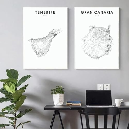 PuPLuM Vintage-Reiseposter Teneriffa, Spanien, Querformat, 20 x 30 cm, Leinwand, Wandkunst, Poster für Wohnzimmer, Dekoration, Gemälde für Heimdekoration