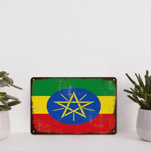 Retro-Aluminium-Blechschild, Äthiopien-Poster, Metalldekor-Schilder, Vintage, Äthiopien-Nationalflagge, lustiges Shabby-Metallschild für Innenhof, Garten, Bar, Kaffee, Dekoration, 20,3 x 30,5 cm