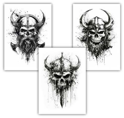 3er Set Wandbilder Modern – Bunte Totenkopf Leinwandbilder in Neon Farben, Kunstdrucke mit Rahmen für Wohnzimmer, Schlafzimmer oder Jugendzimmer, Bilder auf Leinwand Deko mit Haken und Zubehör