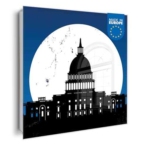 banjado Großer Schlüsselkasten Glas - Schlüsselbox 30x30cm mit 50 Haken - Schlüsselkasten modern für Schlüsselaufbewahrung mit beschreibbarer, magnetischer Glastür - Motiv City Poster Washington