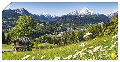 LYSCO XXL Poster 100 x 70cm (F-218) Grüne Wiese mit umstehendem Wald im Hintergrund imposante Gebirge und die Sonne strahlt in ihrem Glanz (Lieferung gerollt!)