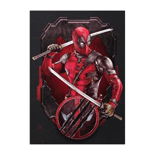 Displate Offiziell Marvel MetallPoster Magnetische Befestigung Inklusive Lizenziert Bilder Hochwertiges Poster Deadpool and Wolverine - Deadpool Illustrated Logo Poster 45 cm x 32 cm