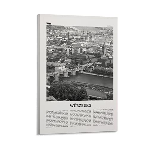 TANOKCRS Würzburg Deutschland Karte Wandkunst Leinwand drucken Poster Artwork ungerahmt moderne Schwarz-Weiß-Karte Souvenir Geschenk Home Decor 31x41 cm