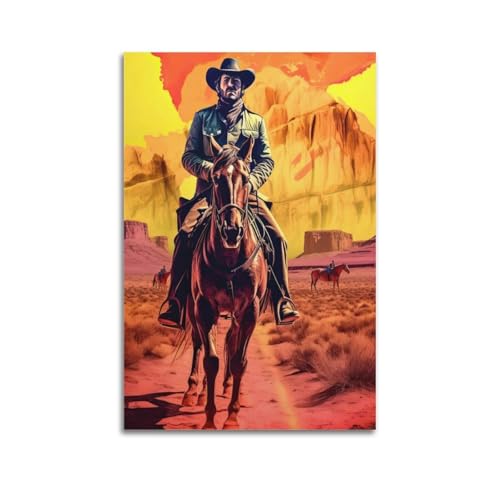 POPOORWQ Poster mit Cowboy in der Wüste, dekoratives Gemälde, Leinwand, Wandposter und Kunstdruck, modernes Familienschlafzimmer, Dekoration, Poster, 30 x 45 cm