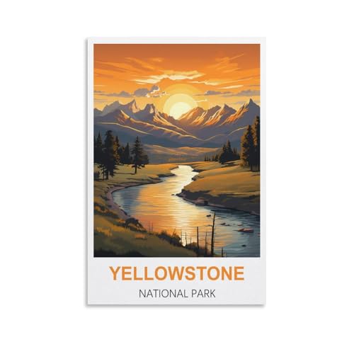 HerZii Prints Yellowstone National Park Wandkunst, Vintage-Poster und Drucke, Natur-Wandkunst, Bergreise, Dekoration, Nationalpark-Poster (30,5 x 40,6 cm, ungerahmt)